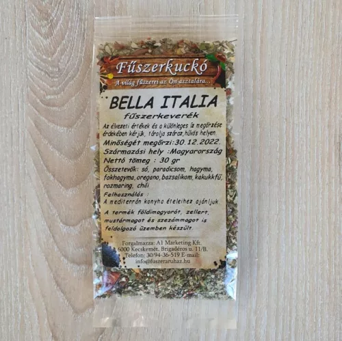 Összetétel: só, paradicsom, hagyma, oregánó, bazsalikom, kakukkfű, rozmaring, chili.