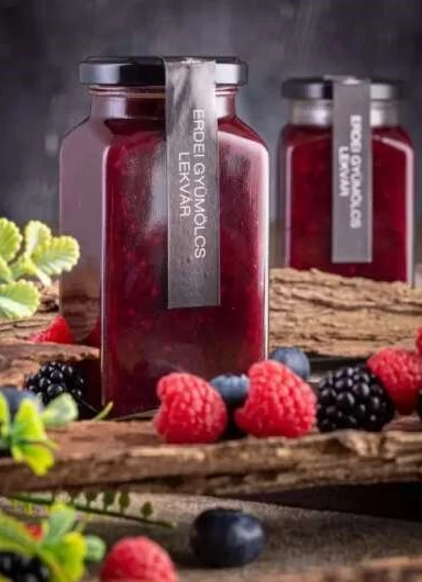 Összetevők: Erdei vegyesgyümölcs 79% (málna, fekete ribizli, piros ribizli, áfonya), cukor, pektin, sűrített citromlé.